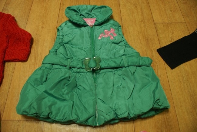 1) pas a pas 민소매 초록잠바 3호 (깨끗한 편이지만 사용감 조금있어요)