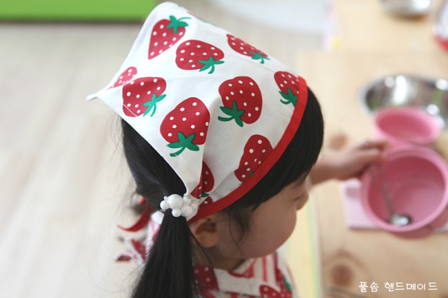 어린이집이나 유치원 요리 시간에 꼭 필요한 앞치마와 머리수건.