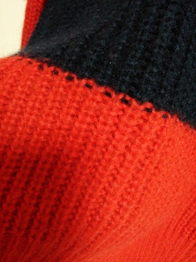 입술모양의넥라인과 금사로 포인트되어 색감이예쁜 니트예요.