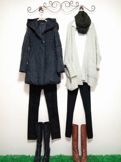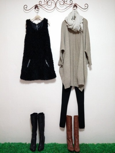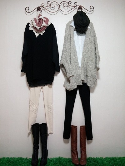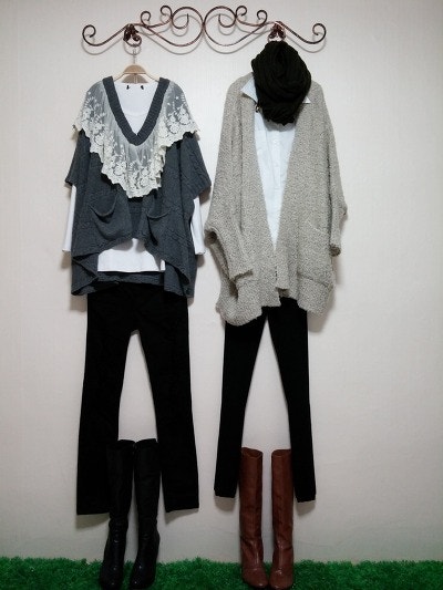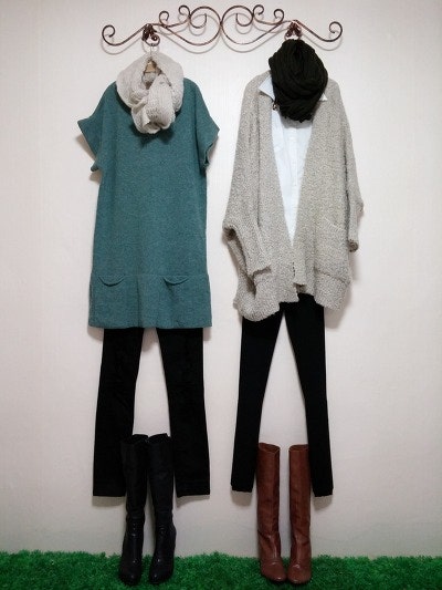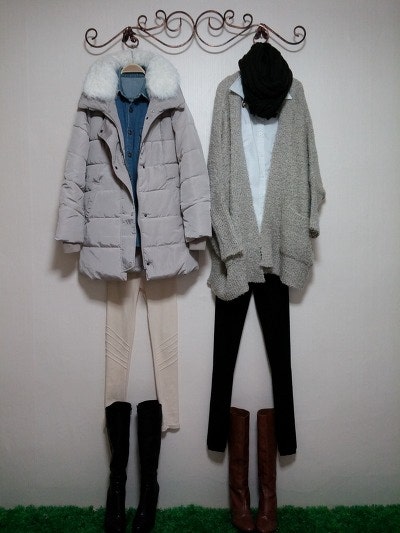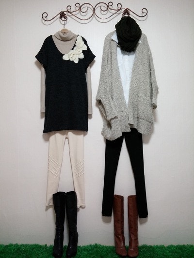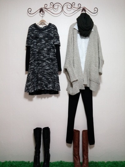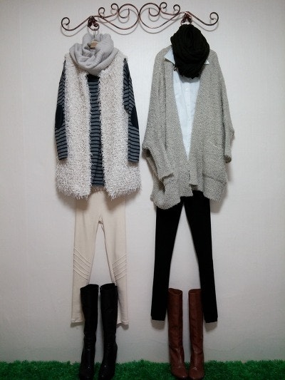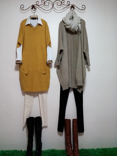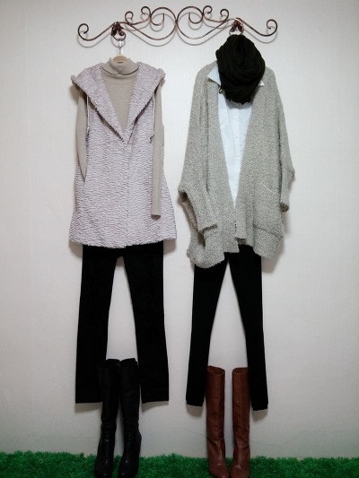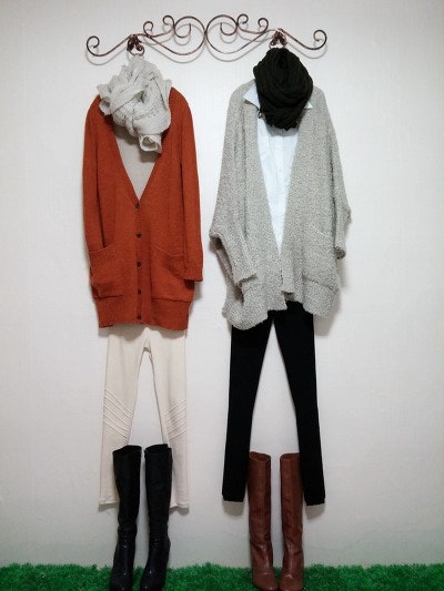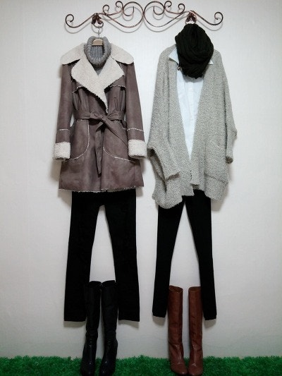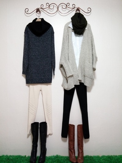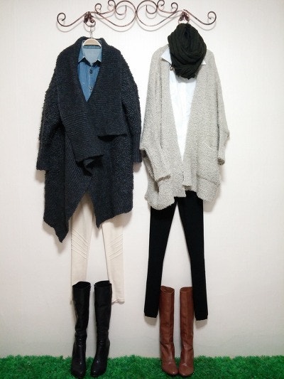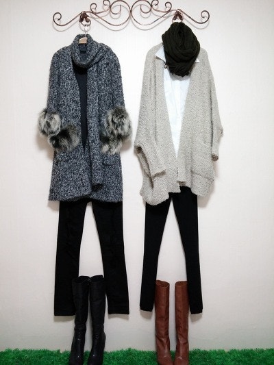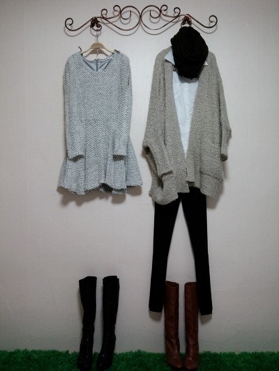 스카프를두른느낌을준가디건이구요 멋스러우며 도톰하네요.
