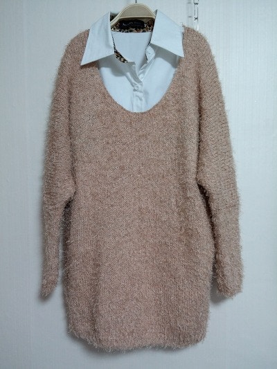 새옷느낌의 색감이예쁘구요. 레이어드해입기좋아요. 여성스런 느낌의 니트예요 .