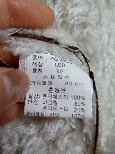 겉감-폴리100% /안감-아크릴80%+폴리20% /카라배색-양털100%