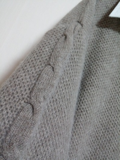 컨디션좋그요 스킨색솔잎니트에 금사실이 섞여있어 은은한펄감느낌이있어 고급스러워보이고 여성스런느낌의니트예요.