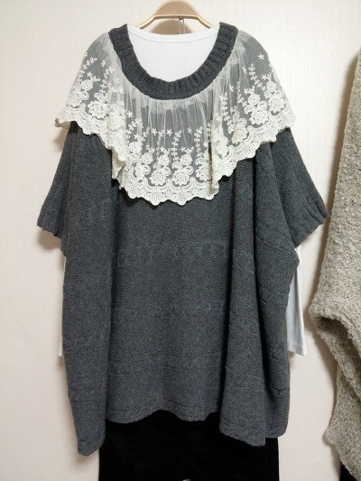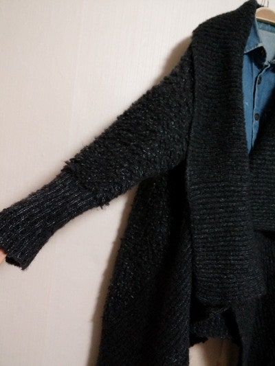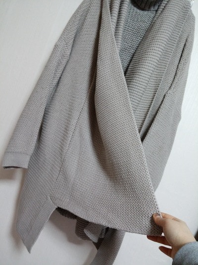 착용안한새옷이며 집업여밈으로 망토느낌의 니트가디건이예요.