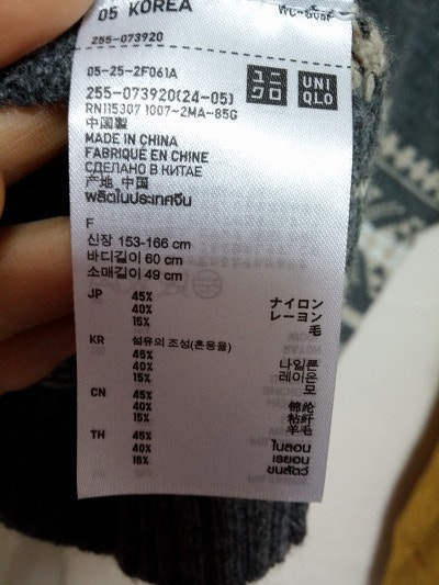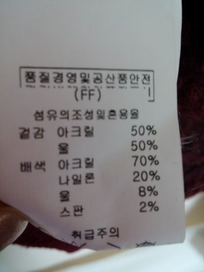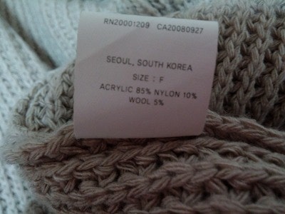 겉감-아크릴50%+울50% /배색-아크릴70%+나일론20%+울8%+스판2%