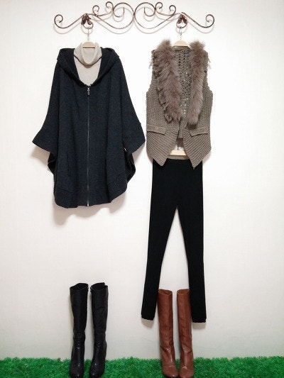 목도리를 세트로 두른듯하게달려있으며 여밈없이 걸칠수있는멋스런 스타일이예요.