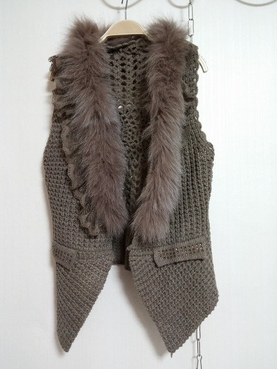 1-614. 카키빛 퍼 니트레이스베스트 55~66