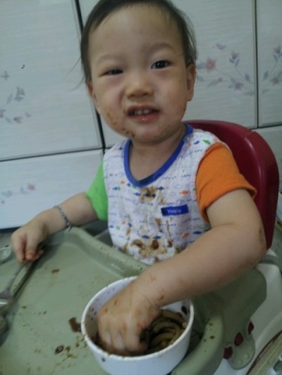 글서 내 우동면건져서 살짝행궈 다시 짜장부어주니 겁니 잘먹음..ㅠㅠ
