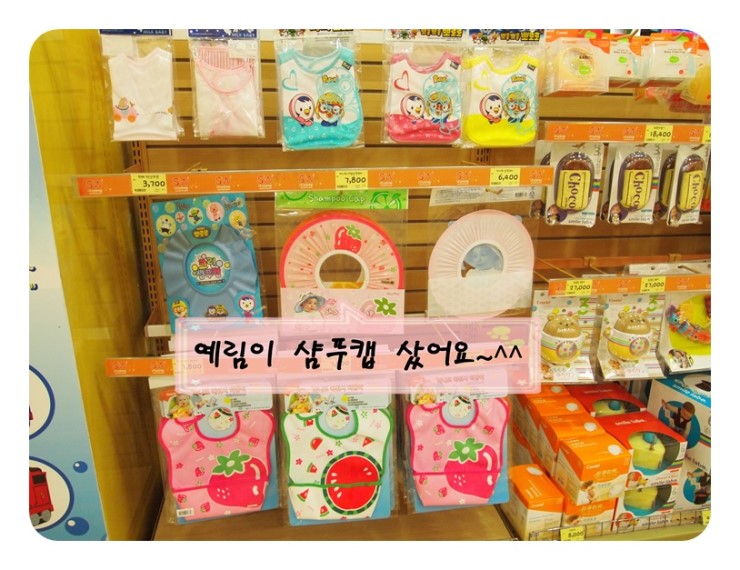 누워서(?) 머리 감는 걸 싫어하는 예림이를 위한 샴푸캡도 샀어요~~^^