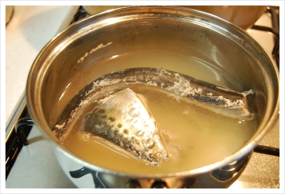 고등어를 물에 삶아 건지세요...