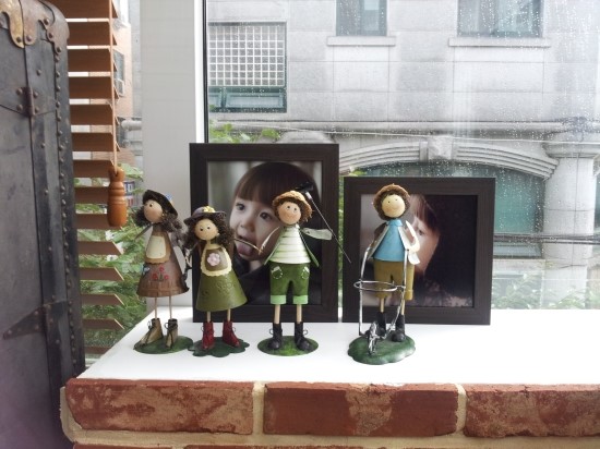 창문 한켠에 자리한 예쁜 인형들...